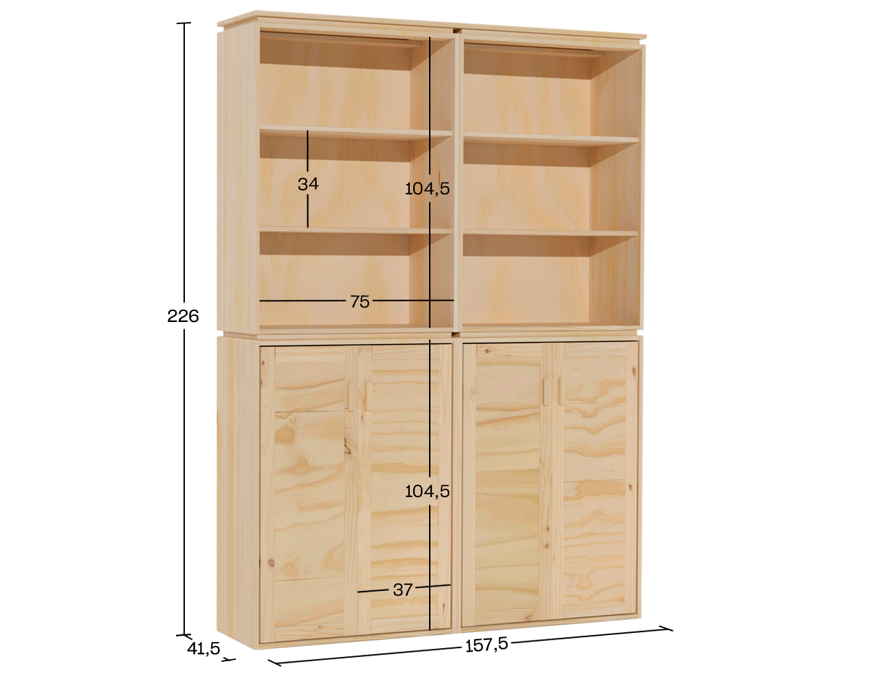 Louceiro duplo em madeira natural ecológica, pensado como móvel de arrumação para salas de estar, escritórios ou para serviços de mesa. Um móvel pensado para se adaptar a diferentes ambientes da casa, que permite organizar e arrumar de forma eficiente, sem abdicar do design. Cada detalhe foi trabalhado para garantir durabilidade e adicionar harmonia ao espaço.