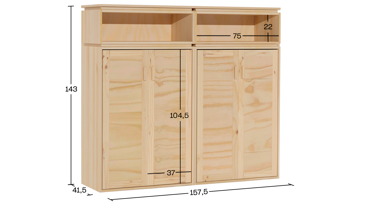 Armário duplo para hall em madeira ecológica e natural, que funciona como móvel sapateira ou móvel de arrumação, com dois módulos superiores abertos. Uma peça que alia funcionalidade e design, pensada para se adaptar aos diferentes espaços da casa. Fabricado em madeira ecológica, permite organizar e arrumar com eficiência, mantendo um estilo fresco e intemporal. Ideal para quem procura soluções práticas.
