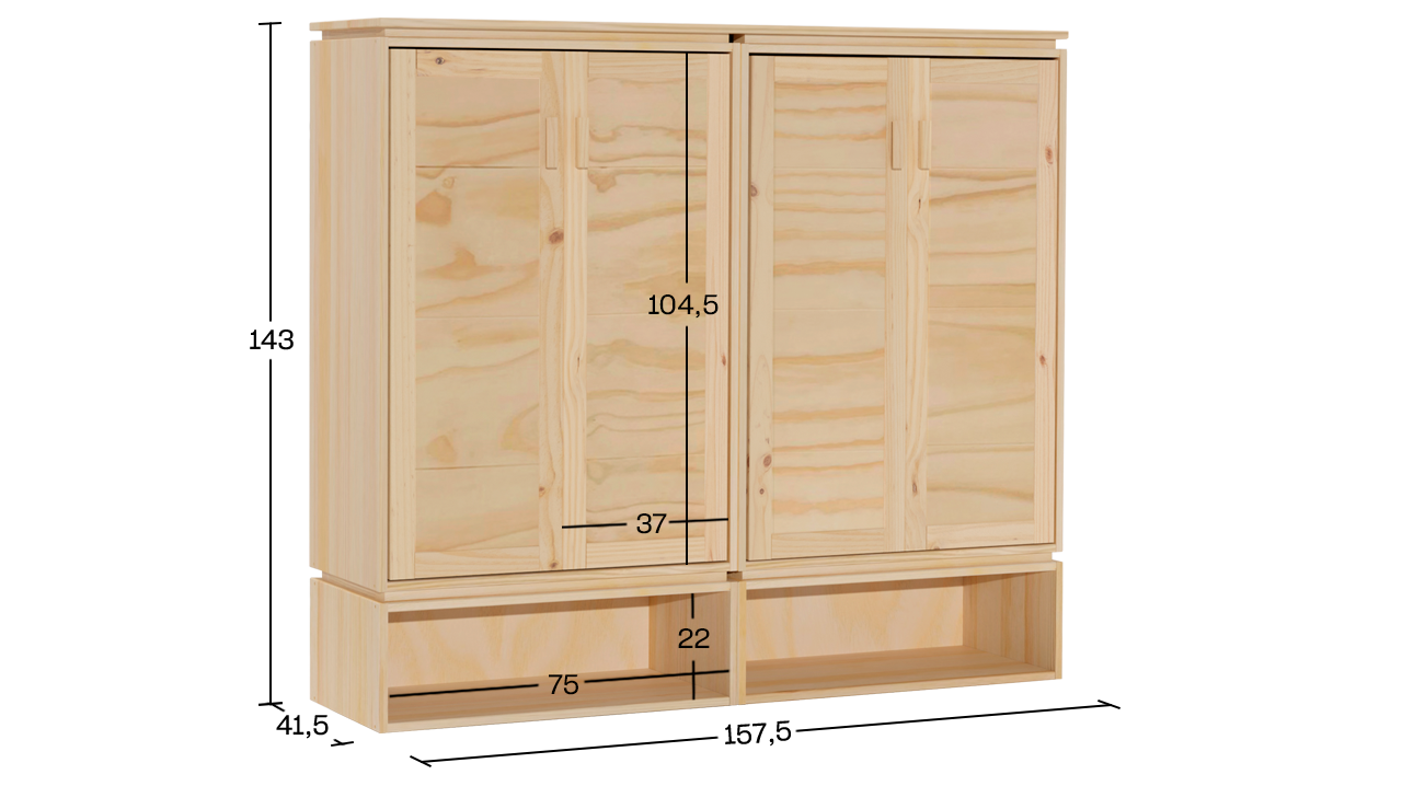 Armário sapateira duplo para hall em madeira ecológica e natural, que funciona como móvel sapateira ou móvel de arrumação, com dois módulos inferiores abertos. Uma peça pensada para se adaptar a diferentes espaços da casa. Fabricado em madeira ecológica, permite organizar e arrumar com estilo fresco e intemporal. Ideal para quem procura soluções práticas sem abdicar do design.