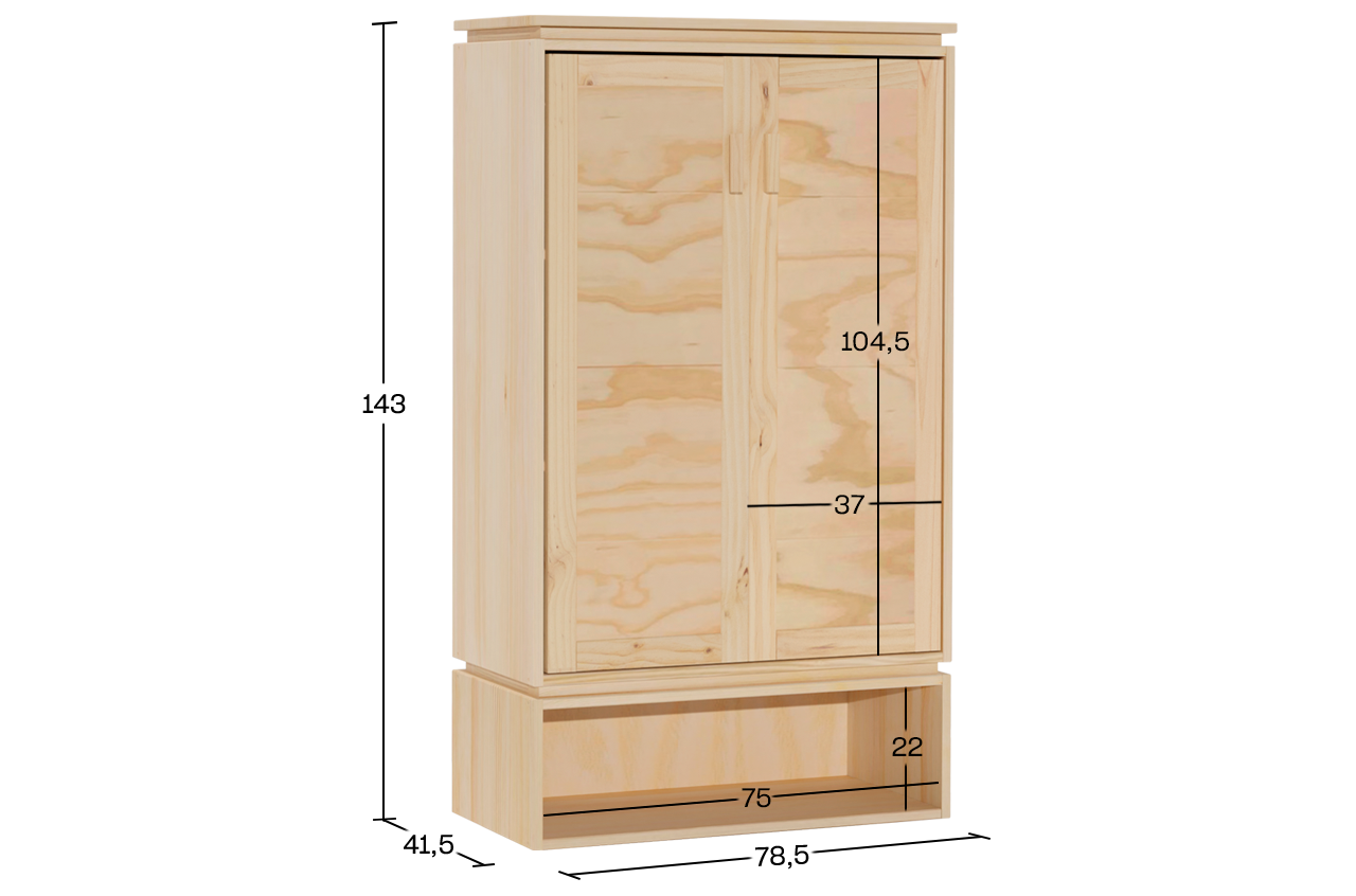 Armário sapateira prático em madeira natural, com portas e um módulo inferior aberto, ideal para o hall de entrada ou closet. Uma peça que alia funcionalidade e design natural, pensada para se adaptar a diferentes espaços da casa. Fabricado em madeira ecológica, permite organizar e arrumar de forma eficiente, preservando um estilo nórdico e autêntico.