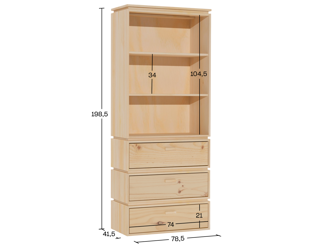 Um móvel sustentável e reciclável com certificação PEFC. Fabricado com madeira maciça ecológica de pinho insignis, proveniente de florestas locais e sustentáveis.
