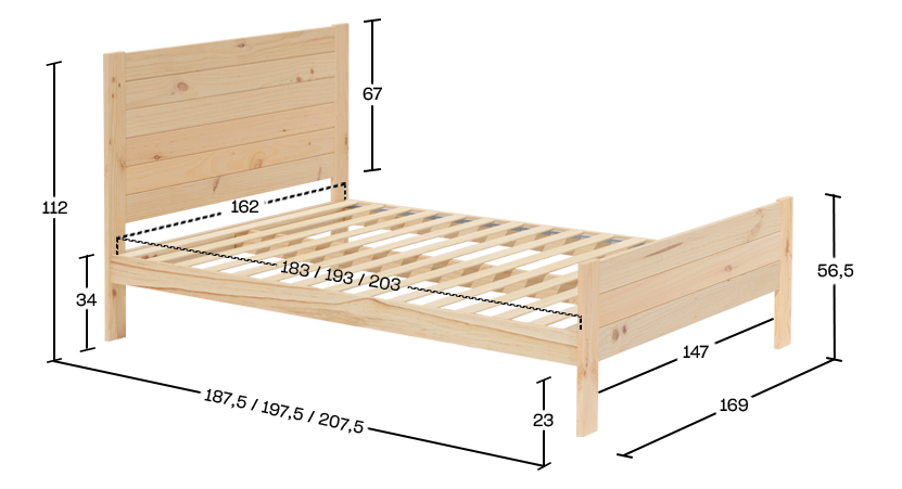 Cama 160 em madeira maciça de pinho com gavetas | LUFE