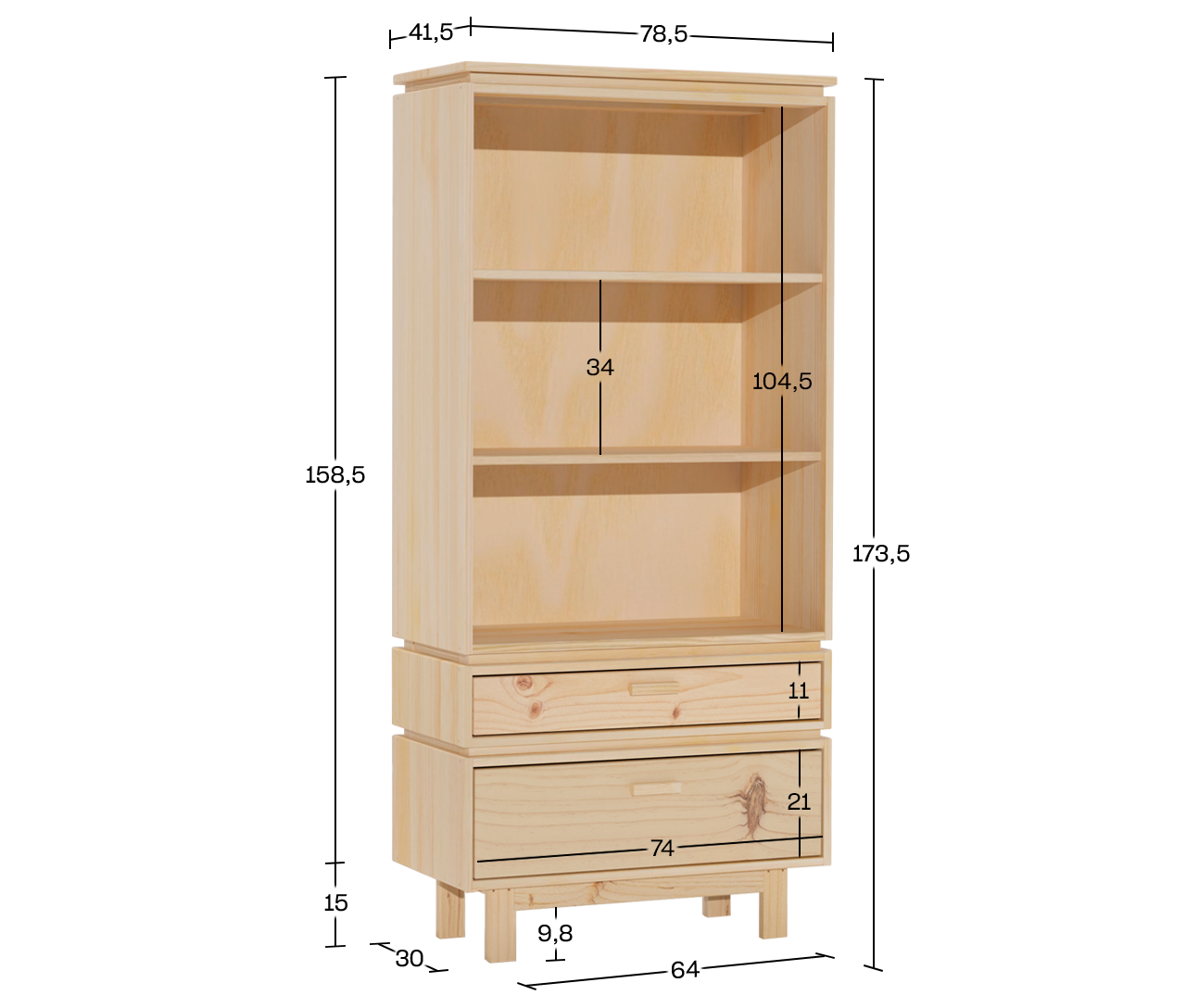 Estante baixa com duas gavetas para arrumar livros e objetos decorativos. Perfeita para espaços de estudo e trabalho. Um móvel que alia funcionalidade e design, pensado para se adaptar a diferentes ambientes da casa. Fabricado em madeira ecológica, é uma peça versátil de arrumação que adiciona um estilo fresco e intemporal. Ideal para quem procura soluções práticas sem abdicar do design.