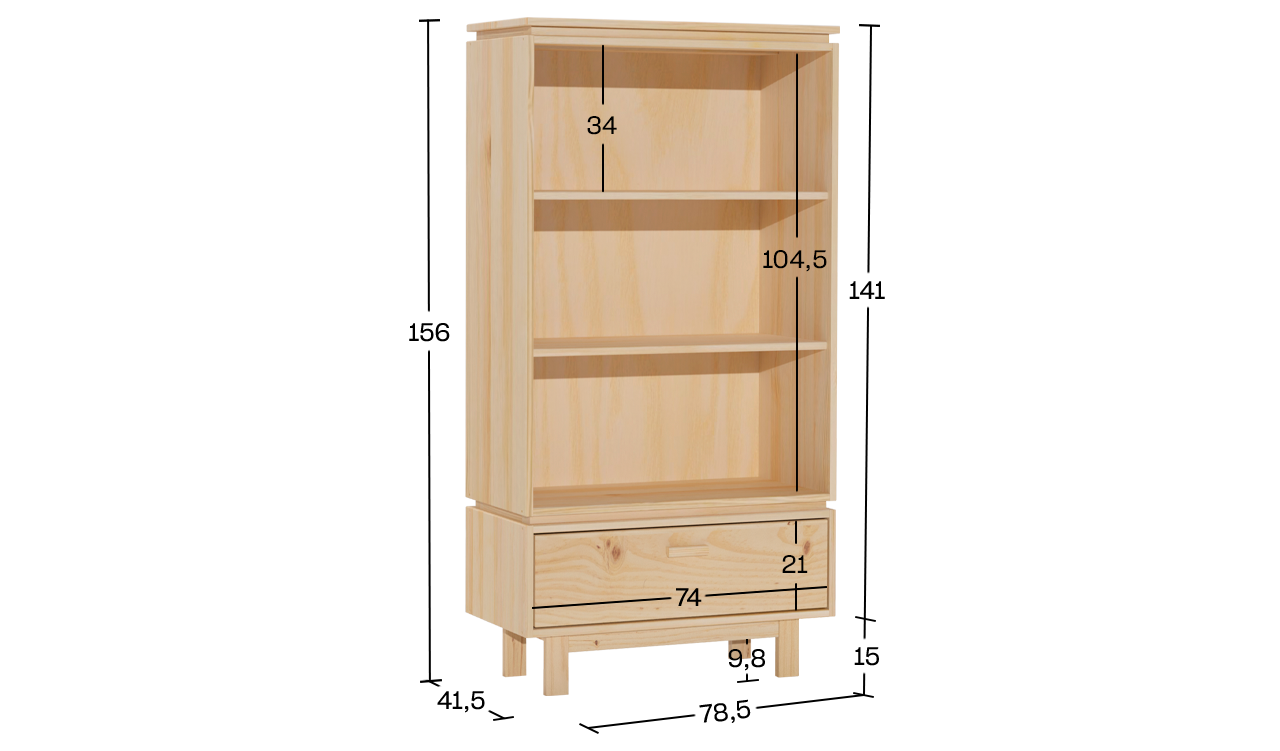 Estante baixa em madeira natural com uma gaveta integrada, ideal para livros e objetos decorativos. Uma solução perfeita para salas de estar ou espaços de estudo e trabalho. Este móvel alia funcionalidade e design, pensado para se adaptar a diferentes ambientes. Fabricado em madeira ecológica de elevada qualidade, permite organizar e arrumar de forma eficiente, mantendo um estilo nórdico e intemporal. Garante durabilidade e harmonia no espaço.