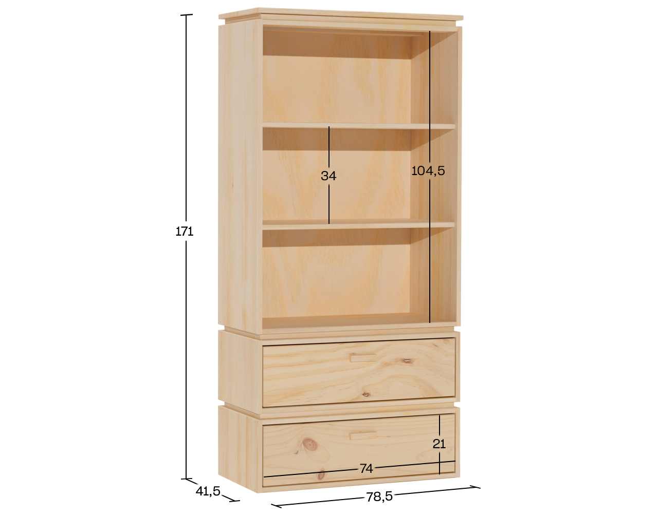 Estante baixa com duas gavetas em madeira natural, ideal para livros, objetos decorativos ou arrumação. Perfeita para espaços de estudo e trabalho. Este móvel alia funcionalidade e design natural, pensado para se adaptar a diferentes ambientes da casa. Fabricado em madeira ecológica de alta qualidade, permite organizar e arrumar de forma eficiente, mantendo um estilo nórdico e intemporal.